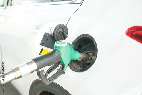Refueling a White SUV at a Gas Station, ensuring the vehicle is powered for the road ahead