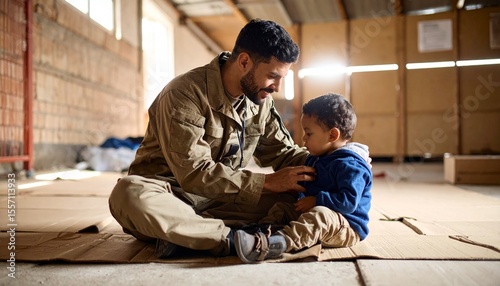 refugee, father, son, shelter, displacement, society, story, tenderness, bond, oneness, problem, sorrowful, visual, justice, right, hope, moment, issue, togetherness, feeling, poverty, housing, strength, human relationships, picture, support, assistance, community, international, global, help, shadow, social, emotion, war, earth, crisis, safety, protection, room, floor, solution, connection, aid, human, image, compassion, intimacy, humanity
