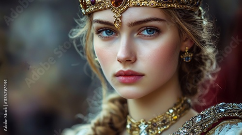 Regal Beauty A Captivating Portrait of a Crowned Queen from a Medieval Dynasty