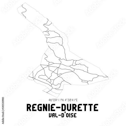 REGNIE-DURETTE Val-d'Oise. Minimalistic street map with black and white lines.