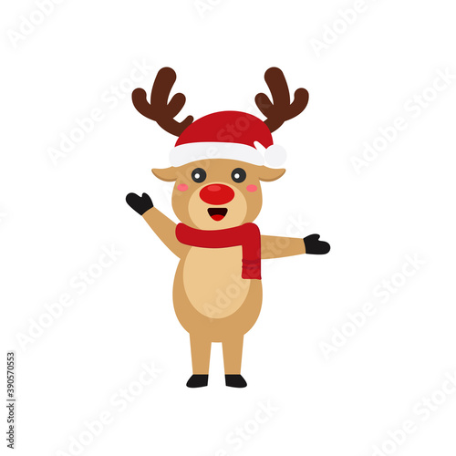 Reindeer set Happy smile in Christmas celebration, standing holding gifts, standing waving, giving out gifts. Pins into the chimney.vector illustration and icon