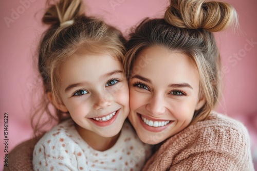Relatives time siblings weekend home concept. Close up portrait of two cheerful honest cute lovely sweet beautiful mum and kid with pigtails hugging the neck laughing isolated on bright