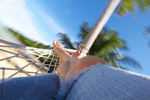 relaxation, beach, hammock, travel, male, sea, sky, foot, idylli, summer, barefoot beach, 1, leg, tropical, blue, vacation, nature, tree, lying, resting, palm, relax, paradise, resort, man, swinging