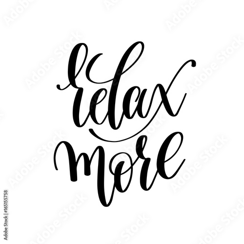 relax more black and white hand written lettering positive quote
