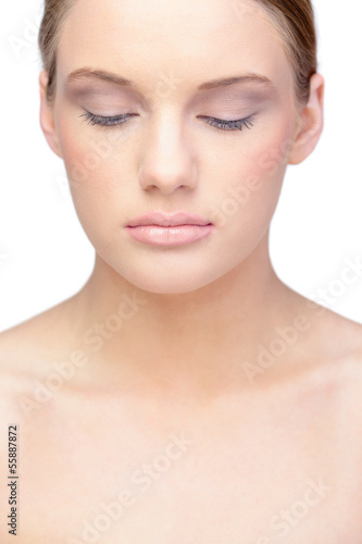 Relaxed blonde model wearing natural make up