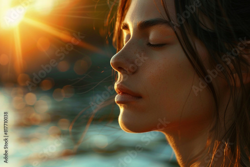 Relaxed yoga person meditating outdoors feel connection harmony with nature illustration made with Generative AI