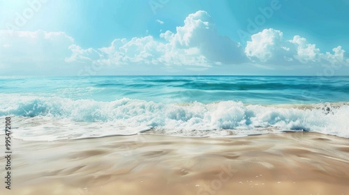 Relaxing beach background with waves summer vacation banner with serene ocean view