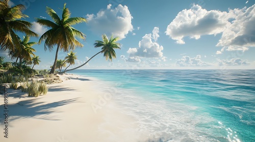 Relaxing beach scene with palm trees tropical paradise nature