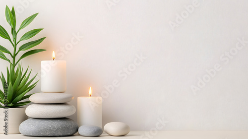 Relaxing candle and stone arrangement minimalist space decoration natural elements calm serenity