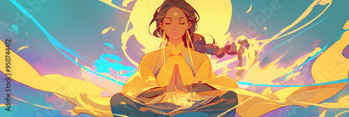 Relaxing Meditation Scene: Peaceful Yoga Woman in Anime Manga Art