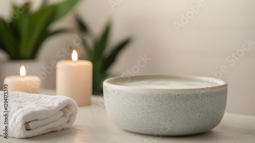 Relaxing spa moment with candles and bowl home calm atmosphere close-up tranquility