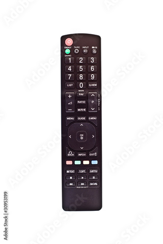isolated, remote, control, white, television, television, background, buttons, object, technology, power, equipment, home, video, electronic, push, buttons, communication, program, black, device