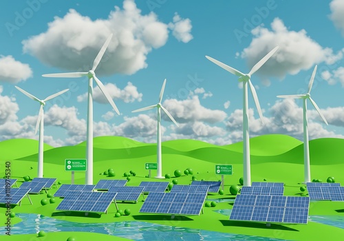 sustainable, renewable energy, wind turbine, solar panel, photovoltaic, green, ecology, environment, electricity, generator, power, technology, environmental, windmill, sun, plant, alternative, ecological, electric, nature, sky, clean, concept, innovation, background, source, cloud, grass, development, resource, electrical, landscape, climate, tree, planet, water