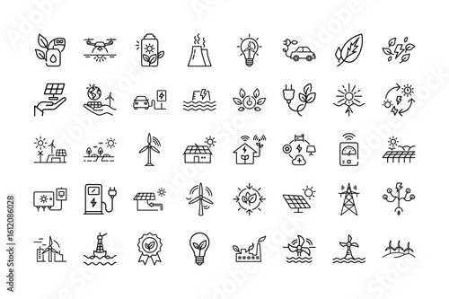Renewable Energy Icon Set for Solar Wind Green Power Eco Design
