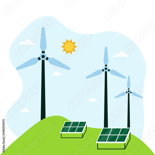 illustration, energy, green, power, renewable, electricity, vector, ecology, solar, eco, environment, sustainable, electric, alternative, technology, wind, flat, panel, industry, icon