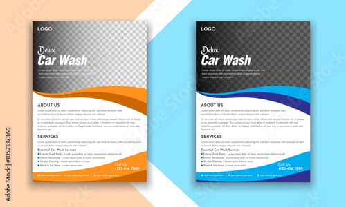 Rent Business Flyer, Car Wash Flyer, Car Cleaning Service Banner, and vector layout design for car wash services