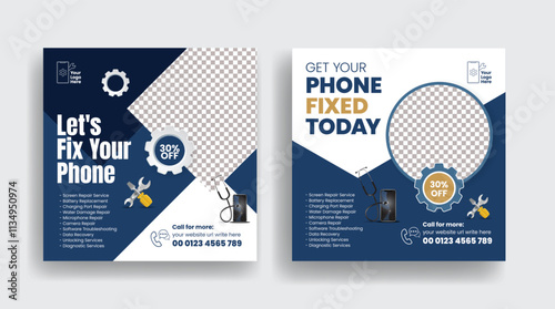 Repairing service workshop square flyer or poster, banner, promotional Phone repair shop marketing social media posts ads and web banner template design