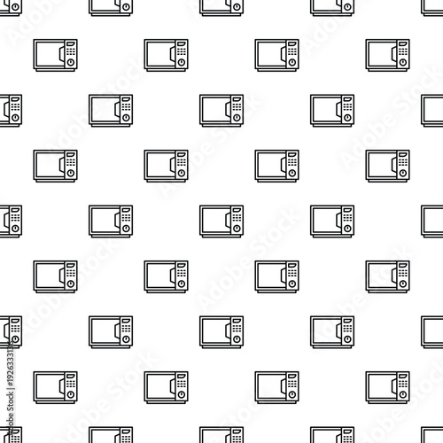 Repeating microwave oven outline icons creating a cooking and kitchen appliance background