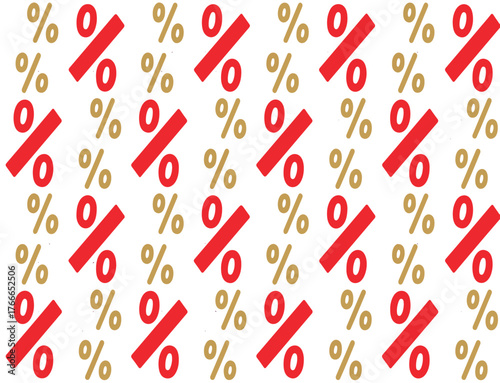 Repeating pattern of red and gold percentage signs on a white background Keywords: pattern, seamless, repeating