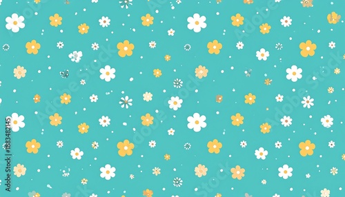 floral, pattern, flower, blossom, bloom, spring, nature, leaf, daisy, chamomile, white, yellow, blue, turquoise, repeat, texture, design, art, digital, bright, cheerful, colourful, vibrant, illustration, graphic, decorative, arrangement, element