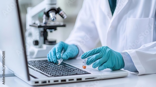 Researcher analyzing mass spectrometry data on a computer, molecular mass analysis, laboratory technology