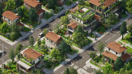 residential, house, neighbourhood, street, tree, garden, landscape, rooftop, city, home, urban, community, building, town, architecture, design, view, aerial, overhead, viewpoint, environment, housing, house, street, road, green, nature, eco, row house, development, illustration, digital, layout, neighbourhood, modern, copy space, vector, isolated, imagery, photographic