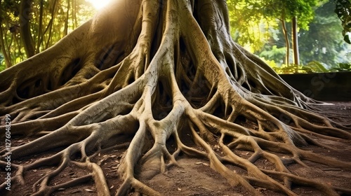 resilience, root, tree, trunk, illustration, exposed, strength, visual, display, anchoring, ground, reaching, direction, nature, stability, support, growth, foundation, network, intertwined, organic, majestic, powerful, intricate, natural, earthy, robust, enduring, sprawling, captivating, dynamic