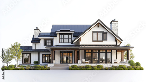 house, american, modern, design, architecture, exterior, residential, home, building, porch, tree, landscaping, white background, roof, chimney, siding, contemporary, elegant, roomy, family, luxury, real estate, property, facades, outdoors, garden, front yard, stylish
