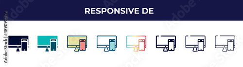 responsive de icon in 8 styles. line, filled, glyph, thin outline, colorful, stroke and gradient styles, responsive de vector sign. symbol, logo illustration. different style icons set.