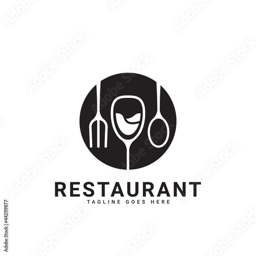 restaurant logo, there are elements of spoon, fork, and wine