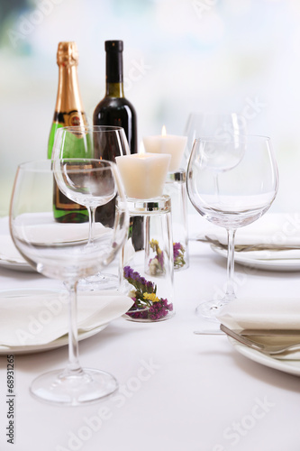 table, setting, banquet, bootle, bright, cafes, candle, champaign, clothes, crystal, cutlery, decoration, dining, dinner, dish, crockery, drink, eating, elegant, establishment, event, food, fork, glasses, guest, interior, knife, lunch, luxury, meal, napkin, nobody, party, plate, preparation, reception, eatery, romantic, set, shiny, silverware, stack, tablecloth, tableware, view, waiting, white, wine, wine glass