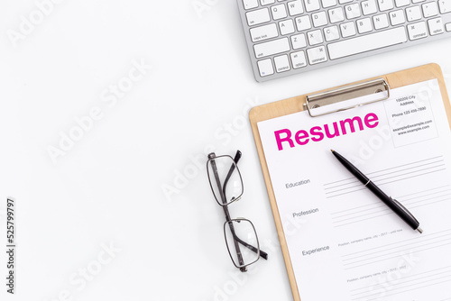 Resume application form on office table. Find new job concept