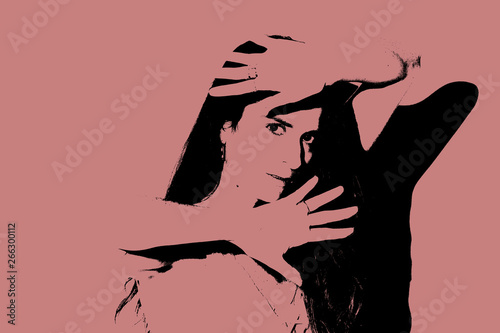 Retratos y siluetas en do tonos de una chica joven