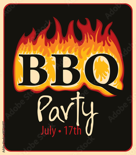 Retro banner with inscription in the fire BBQ