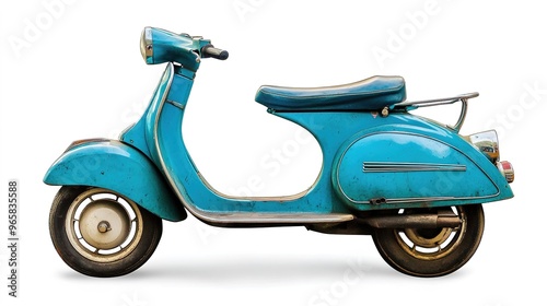 Retro blue scooter, classic design, isolated on white.