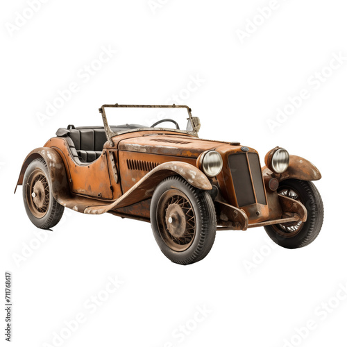 Retro Charm: Isolated Old Rusty Vintage Sports Car isolated on transparent and white background. Generative ai
