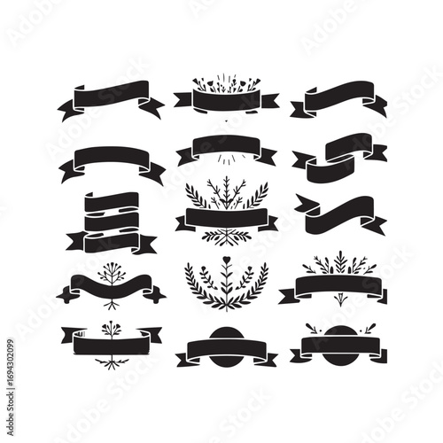 Retro Empty Ribbon Design Pack – Vintage Scrolls and Banners Illustration