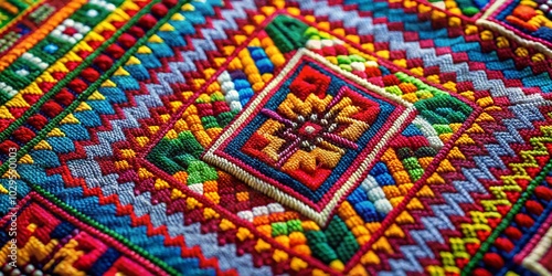 Retro Geometric Ethnic Ornament Pattern Embroidery in Panoramic Photography