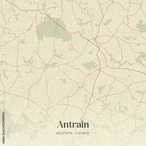 Retro map of Antrain, Bretagne, France. Vintage street map.