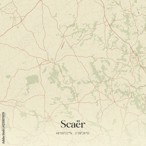 Retro map of Sca�r, Bretagne, France. Vintage street map.