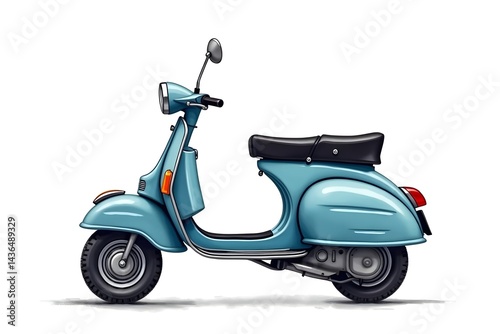 Retro Motorized Vehicle Watercolor Scooter on White Background