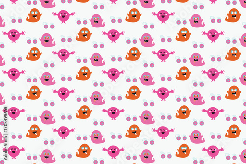 Retro Pop Art Halloween Seamless Pattern bold pop art Pop Monster style seamless pattern great for Halloween posters, packaging, and gift wrap