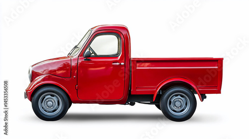 truck, pickup, red, vintage, classic, vehicle, transportation, automobile, car, delivery, cargo, small, compact, side, profile, design, isolated, modern, illustration, graphic, three-dimensional, art, style, retro, driving, travel, delivering, utility, open, load, good, business, service, transport, freight, commercial, redesign, auto, trucking, industrial, styling, commerce, trade