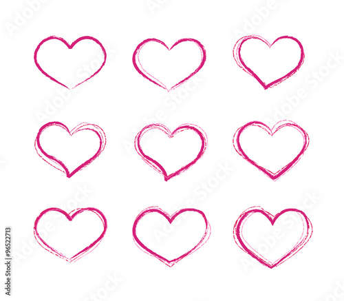 Retro scribble grunge vector heart symbols set