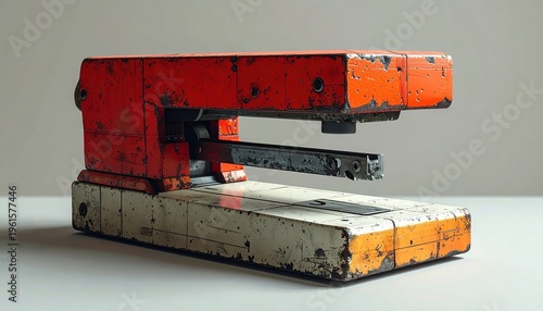 Retro Stapler's industrial charm: An aged, utilitarian stapler, its weathered metal and bold color scheme hinting at a bygone era of office life.
