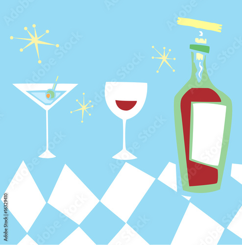 wine, retro, modern, abstract, drink, alcohol, cocktail, bar, red, white, pub, vintage, glasses, goblet, vector, bottle, tablecloth, martini