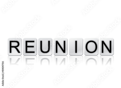 Reunion Concept Tiled Word Isolated on White