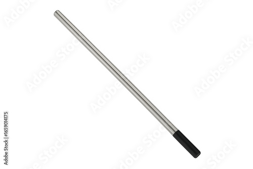 Reusable metal straw with black tip on transparent background