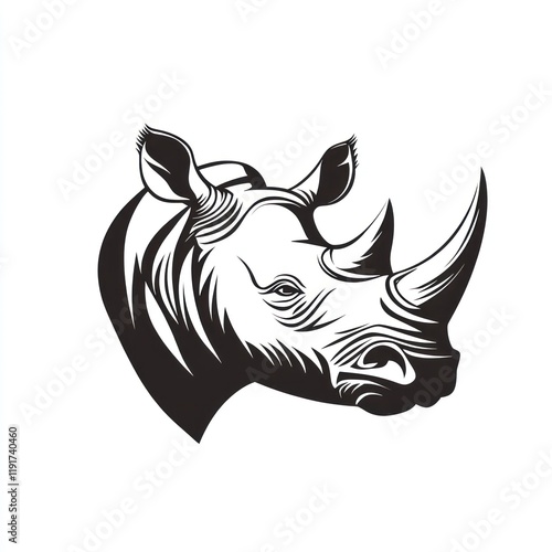 rhino, rhino, wildlife, animal, head, illustration, africa, savanna, nature, print, mammal, horn, powerful, strong, wild, beast, vector, graphic, design, art, image, icon, logotype, symbol, creature, fauna, majestic, endangered, portrait, drawing, vignetting, black, white, monochrome, silhouette, conservation, safari, zoo, herbivore, pachyderm, endangered species