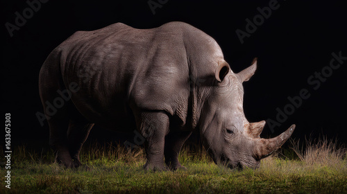 Rhinoceros Grazing in a Field: Studio Lighting High Resolution Image